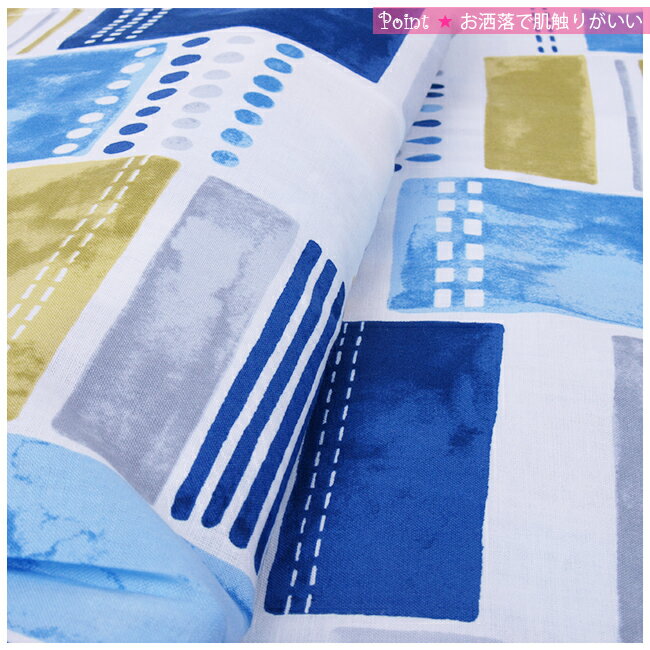 水彩風のタイル柄に幾何学模様がモダンで涼しげ。